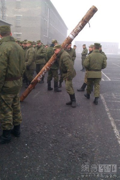 近日,俄军在网上放出一组训练图片再次凸显了“战斗种族”的彪悍风格,部队为训练体能,将圆木改成了各种版本的“武器”,圆木版AK步枪,圆木版RPG,甚至“巨型木剑”等。令人不禁感叹:这样训练也是醉了。图为士兵携带巨型“AK”训练。