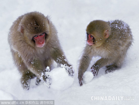 日本猕猴也很会过冬天,瞧瞧这俩小家伙玩得多开心!(图片来源:东方IC)