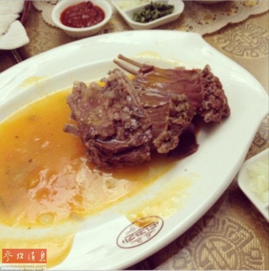 正宗狗肉:科克雷尔先生列举了一道朝鲜美食——“狗排”,虽然朝鲜人并不常吃。朝鲜人最爱吃的其实是冷面。