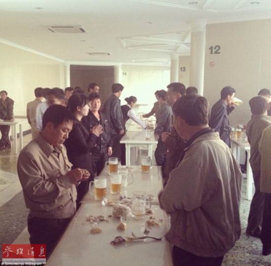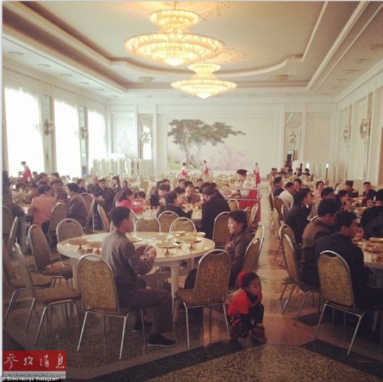 文明有礼:在朝鲜首都平壤以外的地方,贫困随处可见,但是外国人很少能有机会见到那些情景。这张照片是平壤玉流馆的一间餐厅。玉流馆是朝鲜最有名的餐馆,供应朝鲜冷面和甲鱼汤。