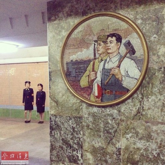红色线:这是平壤地铁红星站的壁画。红星也是朝鲜电脑操作系统的名字。