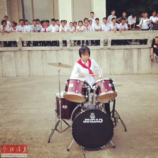 音乐家:科克雷尔先生将这个在平壤演奏架子鼓的小女孩与年轻时候的凯思·莫恩(the Who乐队臭名昭著的鼓手)相提并论。