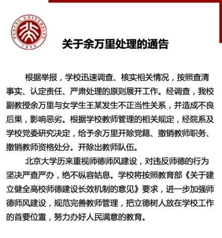 北京大学关于余万里处理的通告