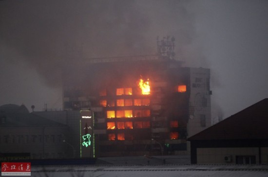 12月4日,在俄罗斯车臣共和国首府格罗兹尼市中心,一座燃烧中的大楼冒出熊熊火焰。俄罗斯车臣共和国首府格罗兹尼当日遭到车臣武装分子袭击,俄安全部队随即对武装分子展开军事行动,击毙7名武装分子。车臣共和国位于俄西南部高加索山脉北侧,是非法武装分子活动频繁的地区。新华社/美联