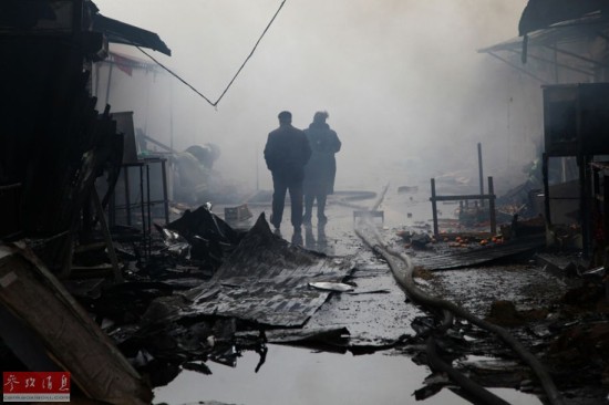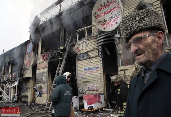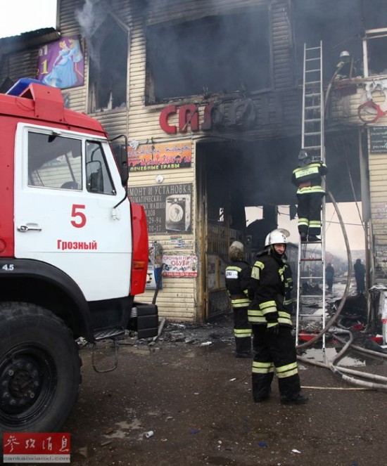 12月4日,在俄罗斯车臣共和国首府格罗兹尼,消防及相关调查人员在一处燃烧的市场展开工作。俄罗斯车臣共和国首府格罗兹尼当日遭到车臣武装分子袭击,俄安全部队随即对武装分子展开军事行动,击毙7名武装分子。车臣共和国位于俄西南部高加索山脉北侧,是非法武装分子活动频繁的地区。新华社/美联