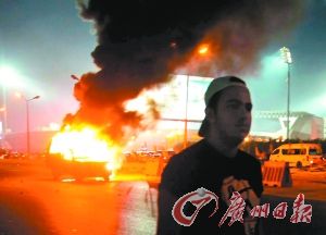 报道说,警方使用催泪瓦斯驱散闹事球迷,一些车辆在骚乱中受损。受冲突影响,这场足球比赛开始时间推迟了30分钟。