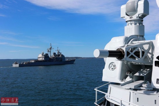9月29日,在澳大利亚杰维斯湾,美国海军“乔辛”号导弹巡洋舰进行海上机动。新华社记者查春明摄