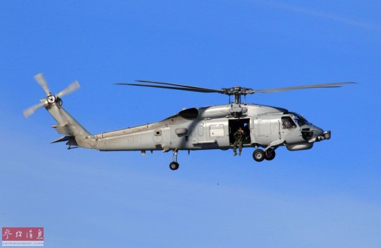 9月29日,在澳大利亚杰维斯湾,澳大利亚海军出动S70直升机担负空中摄像任务。新华社记者查春明摄
