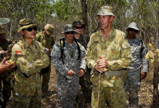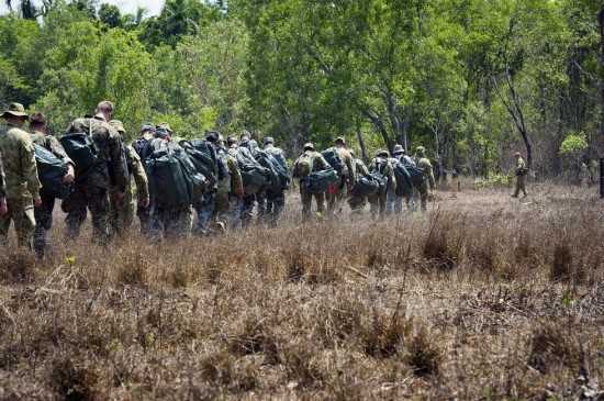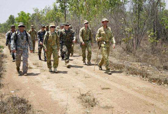 三国参演部队步入举行生存演习的澳大利亚丛林。