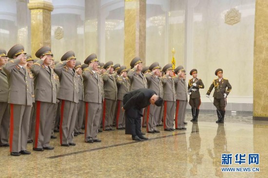 中新网2月16日电 据朝媒16日报道,朝鲜最高领导人金正恩当日零时率领朝鲜高层干部参谒锦绣山太阳宫,纪念已故前领导人金正日诞辰73周年。