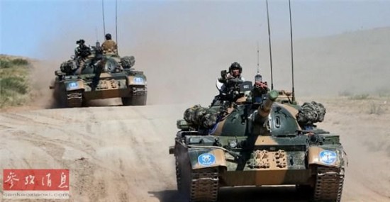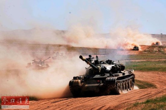 “跨越—2014·朱日和”系列演习首战。参战单位:北京军区27集团军某装甲旅。