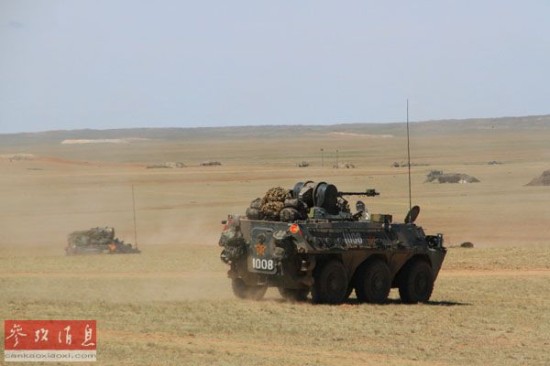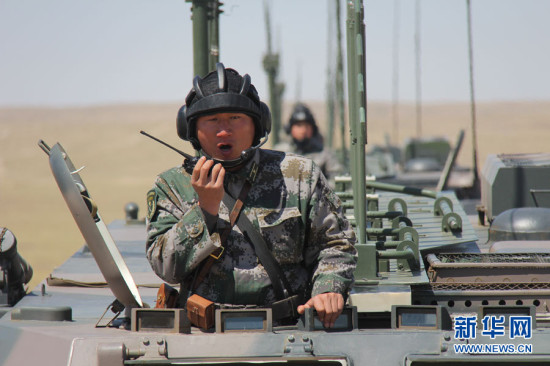 资料图片:2014年6月24日,由总参谋部组织的“跨越-2014·朱日和C”演习进入实兵对抗阶段,担当“红军”的陆军第20集团军某机步旅,与来自北京军区的我军首支专业化“蓝军”在朱日和的草原深处展开激战。 新华社发 (朱思楠 摄)