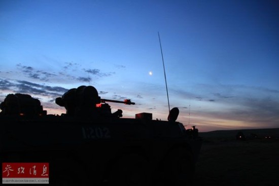 资料图片:2014年6月24日,由总参谋部组织的“跨越-2014·朱日和C”演习进入实兵对抗阶段,担当“红军”的陆军第20集团军某机步旅,与来自北京军区的我军首支专业化“蓝军”在朱日和的草原深处展开激战。新华社发 (朱思楠 摄)