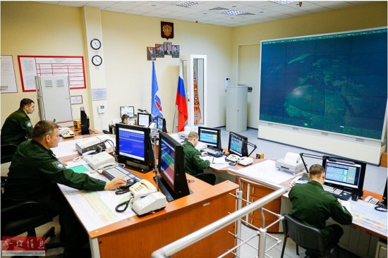 图为2015年2月27日,位于加里宁格勒的俄军远程预警雷达站内,俄军官兵正在进行战斗值班。