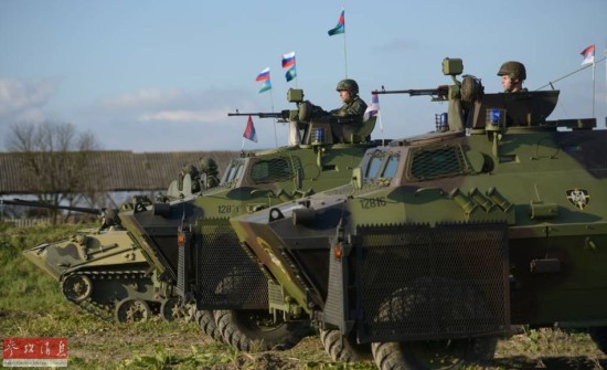 图为2014年11月,俄空降兵BMD空降战车与塞尔维亚军队进行联合演习。