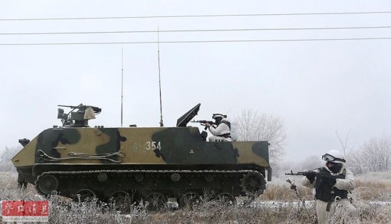 进入2015年之后,双方的军事对峙持续升温,图为2015年1月下旬 俄西部军区独立工兵旅的训练照,照片中的工兵正在进行排雷作业,而BTR-80A装甲车则伴随保护。