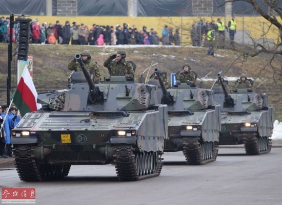 ?图为参加阅兵的爱沙尼亚陆军CV-90装甲车纵队,这个东欧小国近年来已基本完成了由苏式装备向北约制式装备的换装工作。