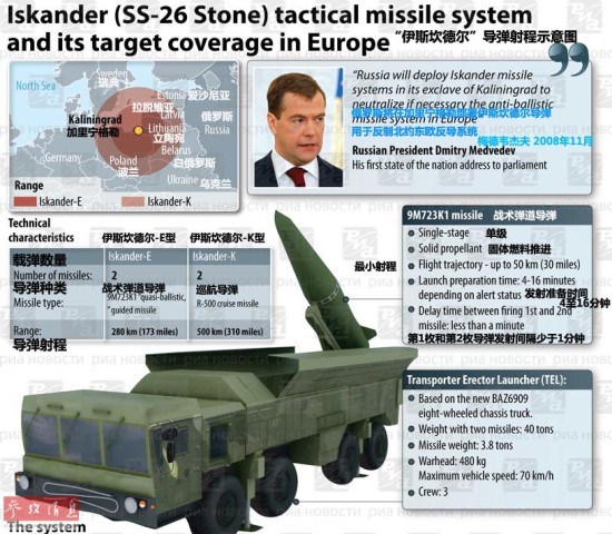 ?图为俄军伊斯坎德尔导弹性能示意图,能看出早在2008年,时任俄总统的梅德韦杰夫就已经提出在加里宁格勒部署该型导弹反制北约反导系统了。