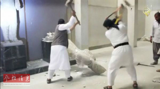 圣战分子使用重型机械毁坏亚述时期古城尼姆鲁德的考古遗迹,大肆毁坏摩苏尔博物馆的珍贵文物,从而在世界各地引发愤怒。