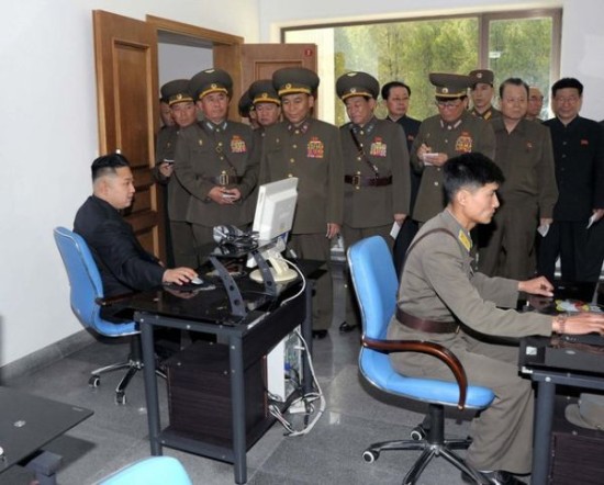 资料图片:金正恩视察朝鲜人民军,操作电脑(图片源于网络)
