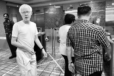 18日,李光耀的孙子李毅鹏(左)前往新加坡中央医院探望图/CFP