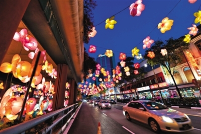 2014年8月19日,新加坡唐人街街头挂满了花灯。