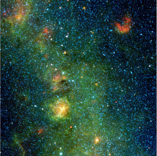 图为位于射手座的三裂星云,也称三叶星云,是由NASA的广角红外线探测望远镜拍摄到的。此星云为发散和发射混和型星云,色彩绚丽夺目。