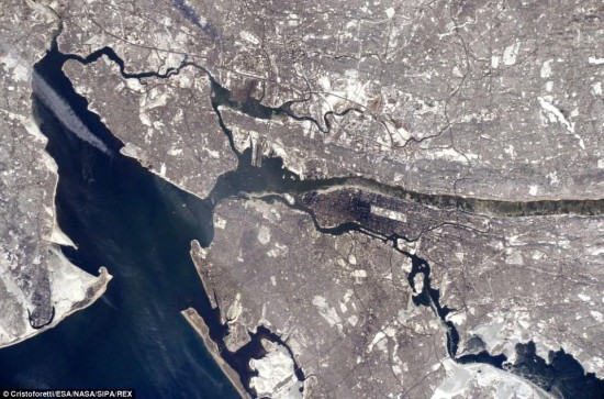 远征队的成员除了观察神奇的大自然,也在时刻关注我们居住的城市,这是他们拍摄的纽约城,繁华且紧凑的建筑排布在镜头下看起来如此巧妙,灰白的颜色却也与大西洋的深蓝形成了对比,其中曼哈顿地区的建筑稠密让它的颜色显得更为浓厚。