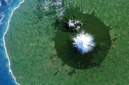 图为7月3号美国宇航局用卫星拍摄的新西兰埃格蒙特国家公园照片。