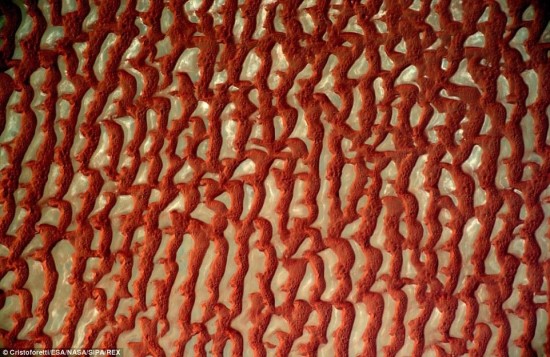 红黄相间,如群兽堆叠,初见此图,多数人会觉得是一幅壁画,然而,它其实是宇航员视角下的鲁卜哈利沙漠,意为“空旷的四分之一”,由于其面积占据阿拉伯半岛约四分之一而得名。它是世界上最大的沙漠之一,覆盖了整个沙特阿拉伯南部地区和大部分的阿曼、阿联酋和也门领土,面积约65万平方公里,超过荷兰、比利时和法国面积总和。