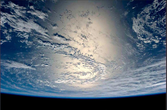 图为太空中阳光折射下的水。这张照片是由德国宇航员亚历山大在国际空间站拍摄,并发布在他的推特上的。