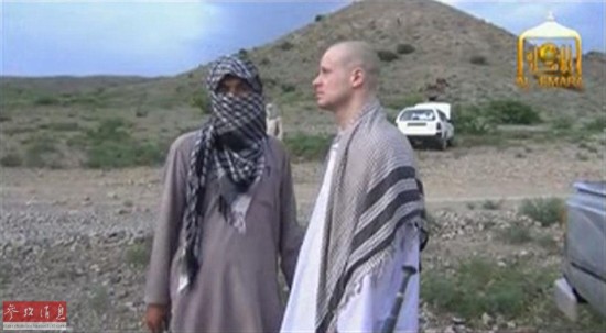 据路透社6月4日消息称,塔利班公布的一段视频显示美国士兵鲍·伯格达尔在阿富汗边界被释放,视频时间长达17分钟;美国总统奥巴马前一天宣布,28岁的美国陆军中士伯格达尔在被阿富汗塔利班掳走近5年后获释。伯格达尔是被塔利班挟持的唯一美军士兵。作为交换条件,美国当局从位于古巴关塔那摩的美军基地释放了5名塔利班囚徒,他们将被移交给卡塔尔官员。