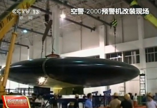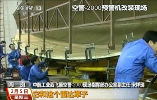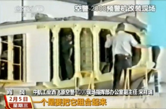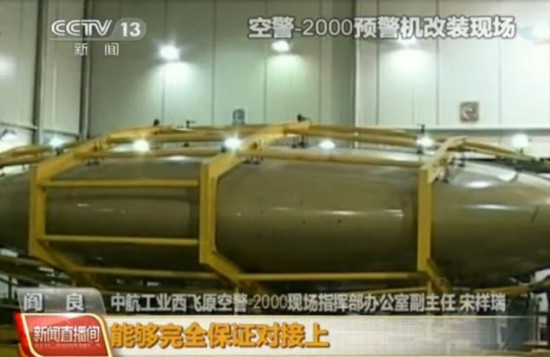 这是央视播出的中国首架空警-2000预警机改装现场。由于研制的时候中国并没有国产的大型飞机作为平台使用,研制人员直接从空军的运输机大队调来了几架伊尔76运输机进行改装。