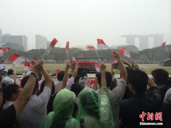 3月29日,新加坡建国总理李光耀的国葬仪式举行,移灵队从国会大厦出发,前往新加坡国立大学文化中心,沿途成千上万民众在倾盆大雨中送别。中新社发 李洋 摄