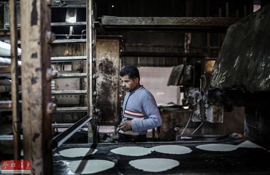 3月22日,在叙利亚艾因阿拉伯(又称科巴尼),一名库尔德人在面包作坊里工作。新华社/法新 ??