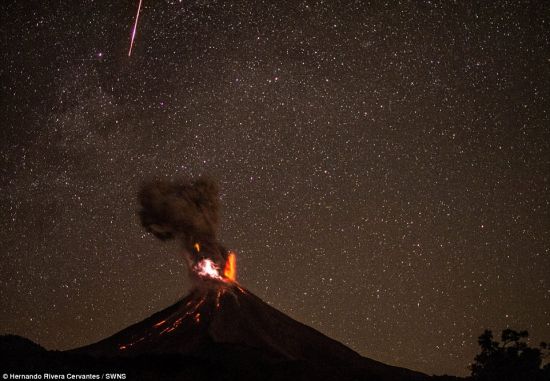 塞万提斯成功拍摄到了夜间火山喷发时的景象。(图片来源:《每日邮报》)