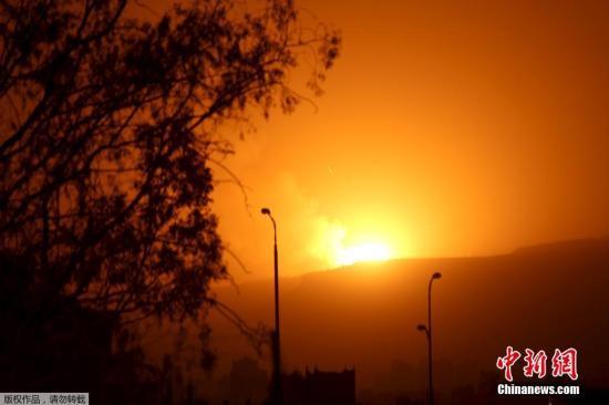 当地时间2015年3月30日,也门萨那,沙特等国家持续空袭胡塞武装的军火库和军事设施,现场浓烟滚滚。