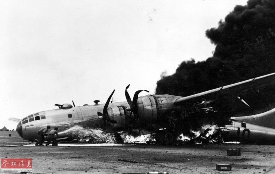 图为美军B-29轰炸机在硫磺岛紧急迫降。