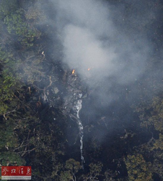 8月5日,冲绳美军汉森军营的坠机现场冒出浓烟。新华社/路透