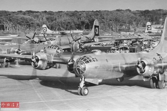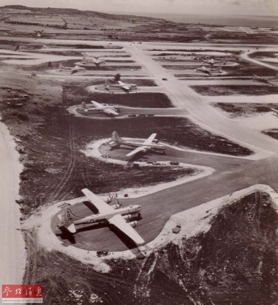 ?图为驻扎在塞班岛Isley机场的第73轰炸机联队B-29机群,摄于1945年。