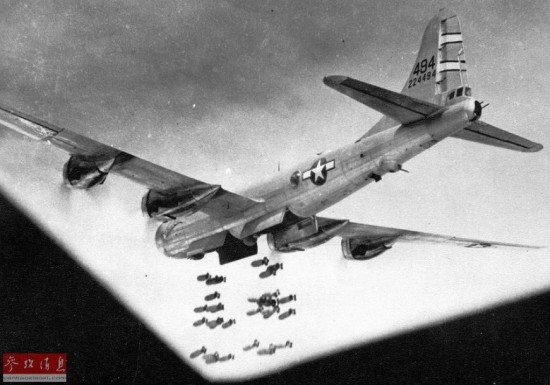 图为第468轰炸机大队的B-29投弹瞬间 ,1945年。