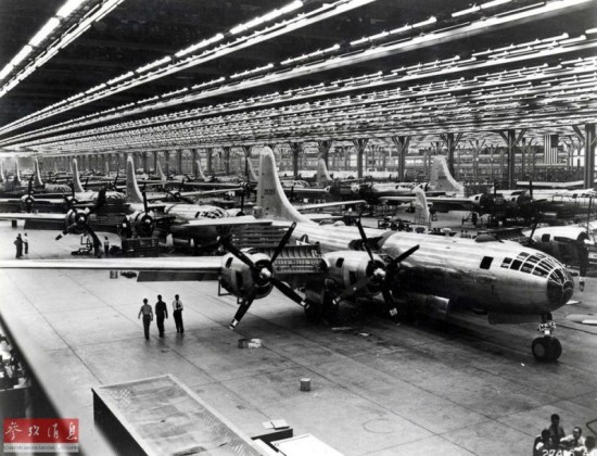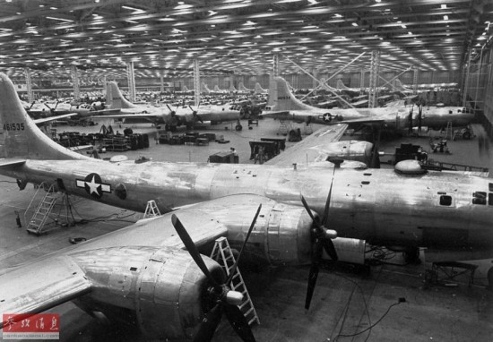 ?图为B-29在波音伦顿工厂的总装线,该厂在二战期间共生产了1119架B-29。