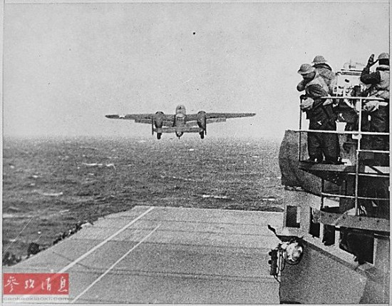 ?杜立特的空袭行动狠狠打击了日本法西斯的猖狂气焰,并令当时的美国军民深受鼓舞、士气大振。图为B-25轰炸机从大黄蜂号上起飞。