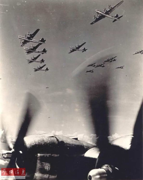 图为飞向日本的B-29机群,摄于1945年。