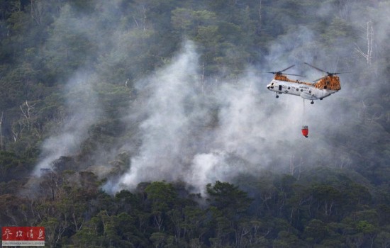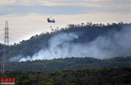 8月5日,在冲绳美军汉森军营,一架美军直升机执行灭火任务。当日,驻日美军一架HH-60型直升机当地时间下午4时左右在冲绳美军汉森军营内坠落,机上3人生还、1人失踪。新华社/路透
