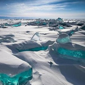 (原标题:贝加尔湖现冰裂美景 像绿松石一般美丽异常(图))