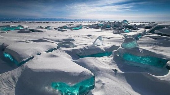 贝加尔湖现冰裂美景 像绿松石一般美丽异常(图)