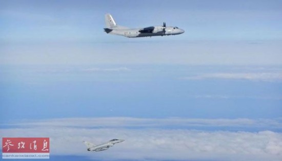 俄军安-26运输机(上)遭到北约“台风”战机跟踪。