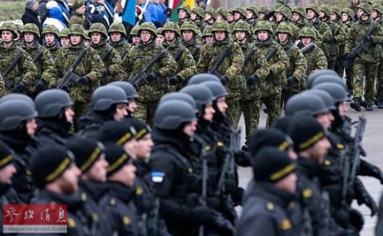 北约军队在距离爱沙尼亚的俄罗斯边境几米范围内炫耀武力,调用装甲运兵车、坦克和1300名爱沙尼亚士兵组成军演队伍。这支队伍还包括100名来自英国及其他欧洲国家的官兵。此前,英国首相卡梅伦曾在近日警告说,这个波罗的海小国可能成为俄罗斯觊觎采用克里米亚式手段吞并的下一个目标。