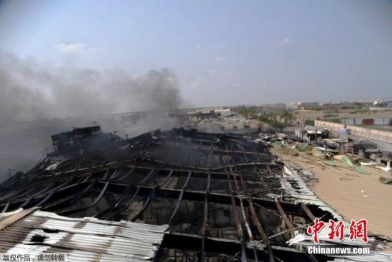 资料图:当地时间4月1日,也门荷台达市,沙特阿拉伯等国家的战机在空袭中误炸了该市一家奶制品工厂,造成至少37人死亡、80人受伤。图为被炸的奶制品工厂。